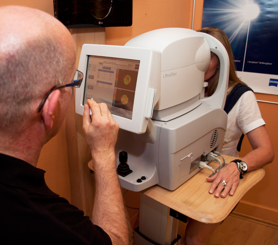 vermessen wir Ihre Augen perfekt nach dem neuesten Stand der Technik, arbeiten mit hochwertigster Ausstattung Technologie von Technologieführern und mit den besten Verfahren nach den neuesten wissenschaftlichen Erkenntnissen. Wir arbeiten mit visueller Technik und erklären Ihnen die Ergebnisse. Um Ihr höchst individuelles Sehprofil zu ermitteln, arbeiten wir mit dem "Eye Profiler", offiziell auch i.Profiler genannt, einem top Messgerät von Zeiss, das basierend auf einem innovativen Messverfahren, genannt i.Scription, Ihr Sehen revolutioniert. Es garantiert, hohen Kontrast und große Tiefenschärfe auf objektiver, gemessener Basis. Um auch subjektive Sehaspekte mit zu berücksichtigen werden die Messergebnisse elektronisch an das Refraktions-Center weitergeleitet.